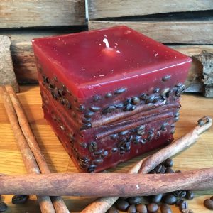 Viereckige Kerze mit Kaffeebohnen.