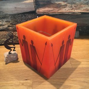 Die Windlichter sind mit Dekosteinchen und einem schönen Glas ausgestattet, in dass ein Teelicht oder eine kleine Stumpenkerze gestellt wird. Durch die hohe Transparenz des Wachses erleuchtet die Kerzenflamme das Motiv und hebt dieses auf sehr dekorative Weise hervor.